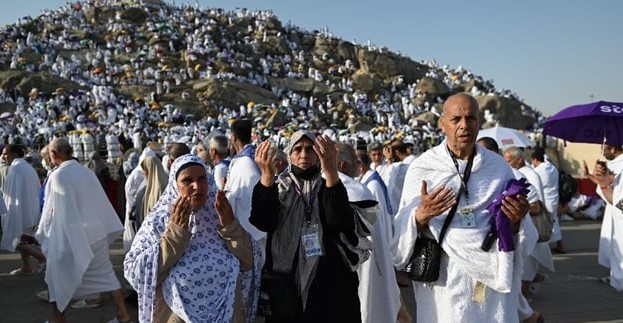 Muslim pilgrims pray on Mount Arafat in hajj climax