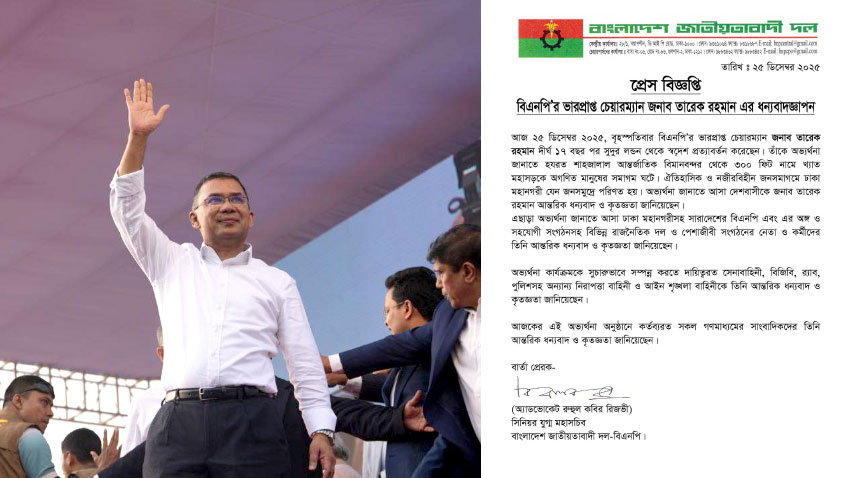 Tarique Rahman thanks supporters, security forces and media